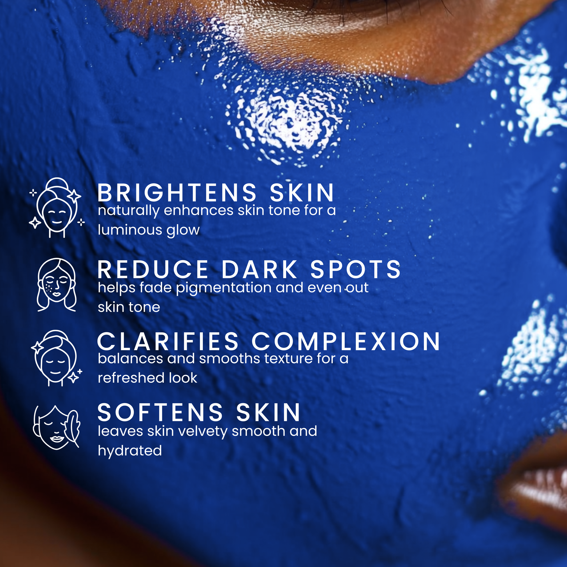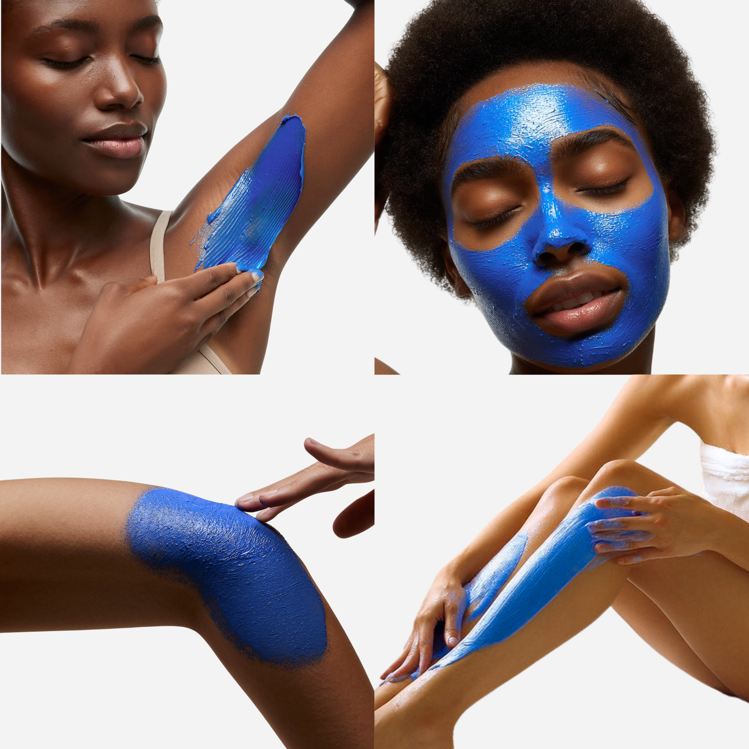 No — if used correctly, it won’t stain. You may see a faint bluish hue when it’s on your skin, but it rinses off. Any light tint that remains usually disappears within your normal cleansing routine.